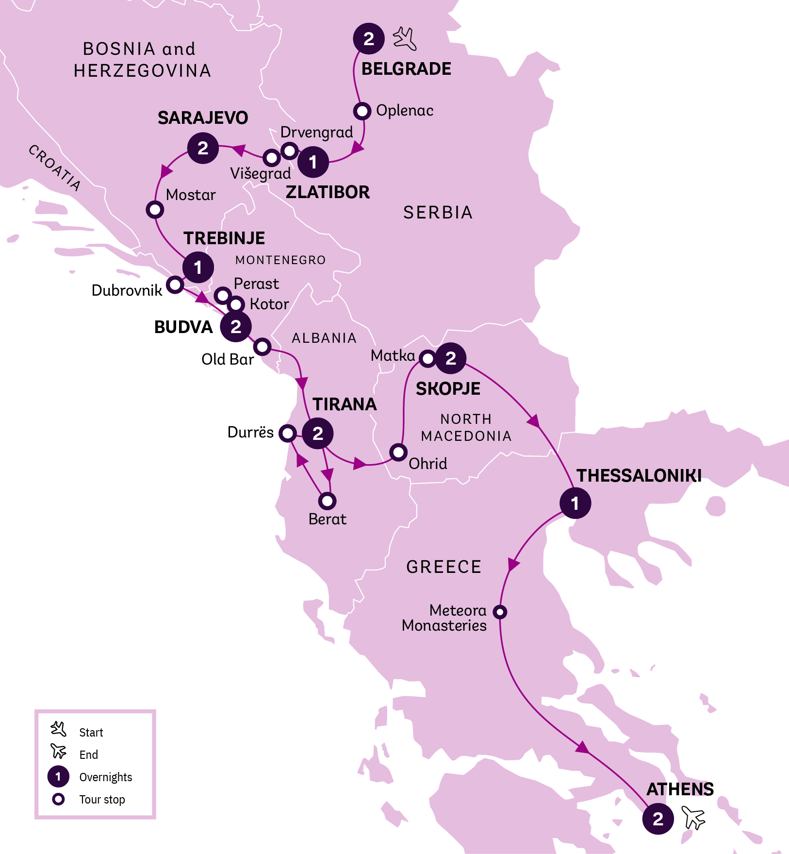 Serbia – Bosnia and Herzegovina – Croatia – Montenegro – Albania – North Macedonia – Greece